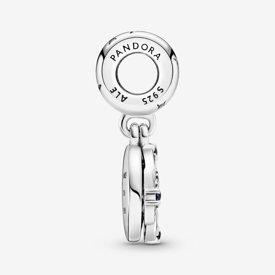 Channel your inner rebel with the Star Wars Princess Leia Double Dangle Charm. The top disc features Princess Leia's 3D face and a frame with four stellar blue crystals. The back disc has space-inspired details surrounded by shimmering blue enamel and a "Don't mess with this Princess" engraving. The bail features stars with blue cubic zirconia in the center. Princess Leia always fights for what she believes in and this charm will remind you to do the same.